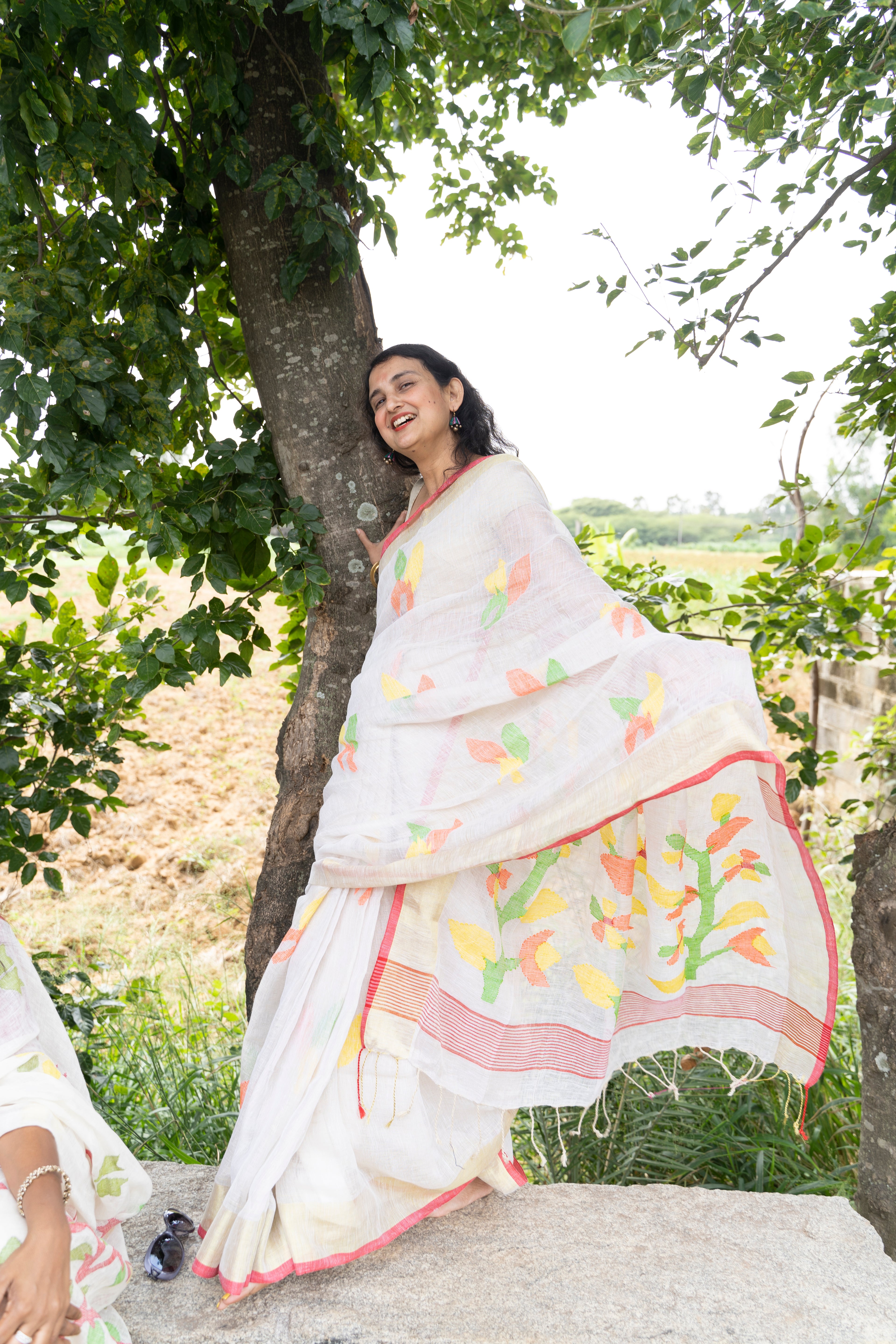 Dhaniakhali Handloom Saree - Red, White & Yellow - Lal Paar